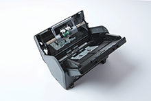 Våra breda utmatningsbrickor staplar dokumenten på plats, vilket gör insamlingen av skannade dokument enkel och sparar tid. Brickorna är också vinklade för mindre pappersmotstånd, så att dokumenten enkelt kan glida ner smidigt och minska pappersveck. Dessa små men teknisk specifika egenskaperna är det som gör Brother till en dedikerad specialist på skannrar.